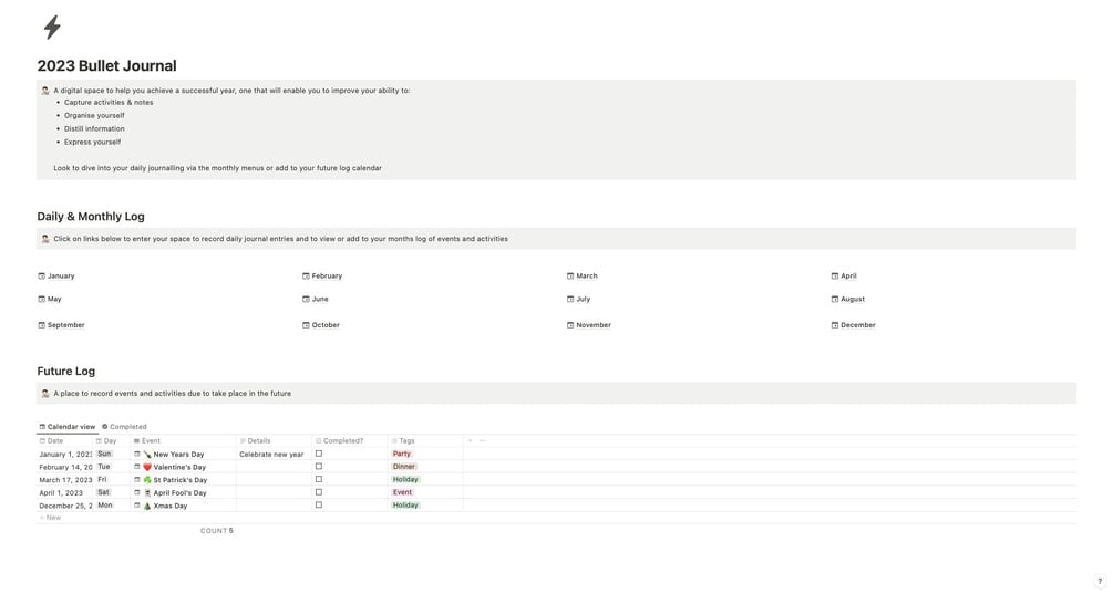 2023 Digital Bullet Journal - Notion Template